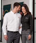 easy-care 60% cotton/40% polyester broadcloth • 3.4-oz. • wrinkle-free finish • front and back darts for a feminine silhouette • spread collar • dyed-to-match buttons • 2-button adjustable cuffs with button-through sleeve plackets • Sizes: S-3XL