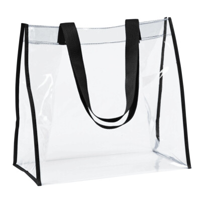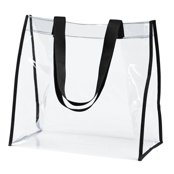PVC; Clear PVC body; Contrasting binding; 19" contrasting top carrying handles; 12"W x 12"H x 6"D ; Requires California Prop 65 Warning Label;