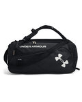 100% polyester; UA Storm technology delivers an element-battling, highly water-repellent finish; Works as both a backpack & duffle with removable duffle strap; Padded airmesh back panel & PU-coated body fabric for ultimate durability & breathability; Large vented main compartment with internal organization; Soft-lined laptop sleeve—holds up to 15"; Dual-direction extra deep water bottle pockets & 2 exterior valuables pocket; Gusseted laundry/shoe pocket placed at bottom; Welded hypalon modern molle webbing for additional attachment points SPECS: Style #: 1361225; Dimensions: 12.4"W x 10.5"H x 23"L; Cubic Volume: 50 L;