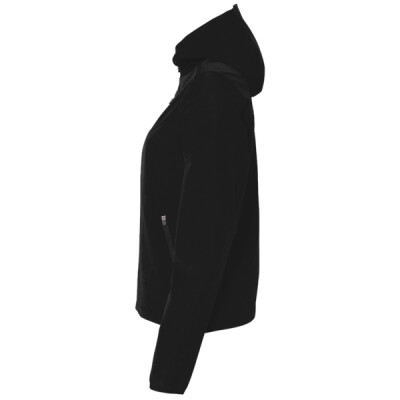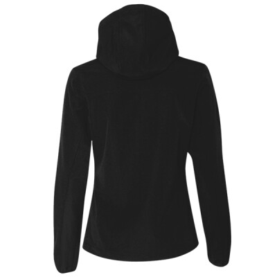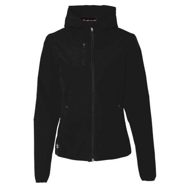 100% polyester, all season soft shell; Wind resistant; Water resistant, DWR finish; Breathable; Thumbhole cuff feature for secure fit ; Auto lock zipper with easy grab puller; Media port; 4-way stretch; Media port; Adjustable three-piece hood designed to contour for a comfortable fit; Zippered chest and hand pockets;
