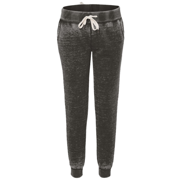 7 oz. 55/45 cotton/polyester ; Acid wash burnout fleece with silicone finish; 2x1 rib cuffs & waistband; Side sash pockets; External drawcord;